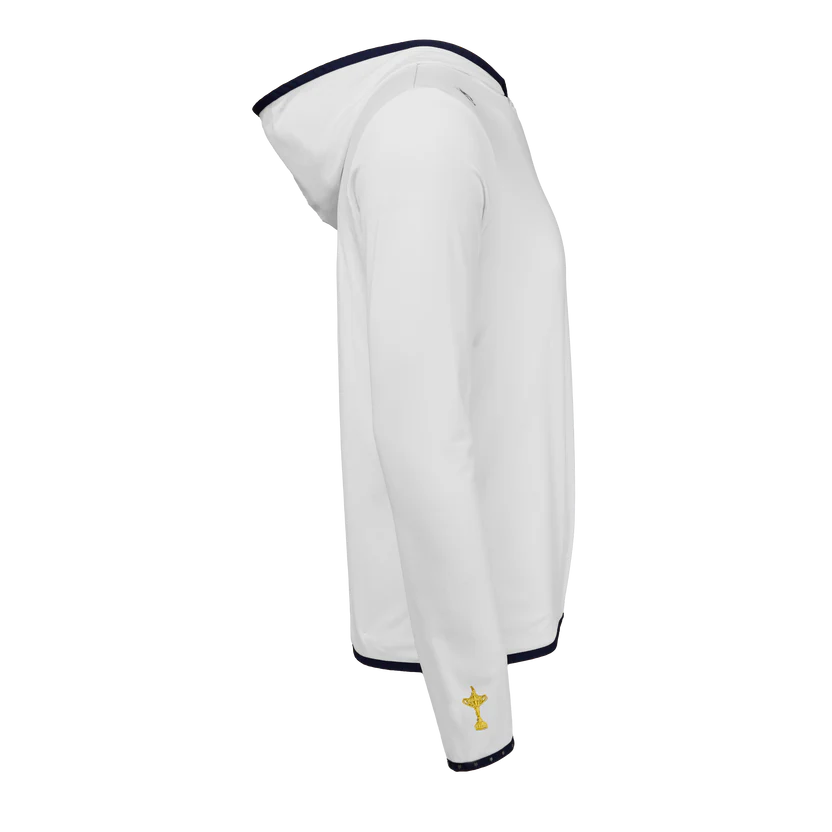 The 2025 Ryder Cup Colorado Hoodie is made from technical brushback knit fabric that is breathable, lightweight, and soft for year-round wear. It featured blind seams and elasticated sleeves and hem for a clean look. The hood is designed as a funnel neck for added warmth, and it features Greyson wolves on the hem. This is an officially licensed product from the 2025 Ryder Cup.